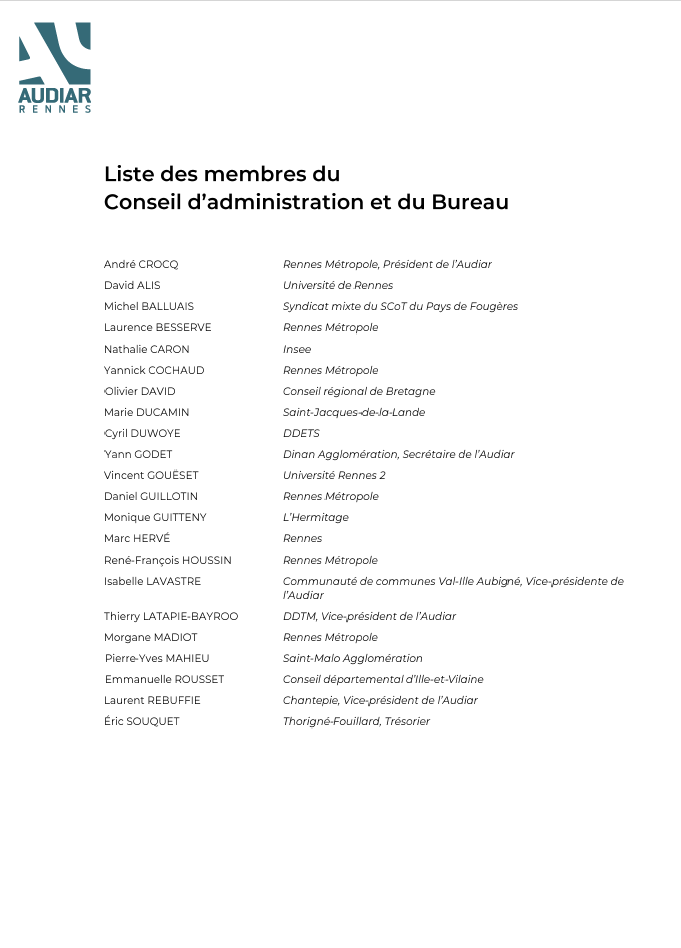 Les membres de l’agence sont répartis en 3 catégories : membres de droit, membres associés et membres actifs. Ils élisent les membres du Conseil d’administration qui, lui-même, désigne les membres du Bureau.